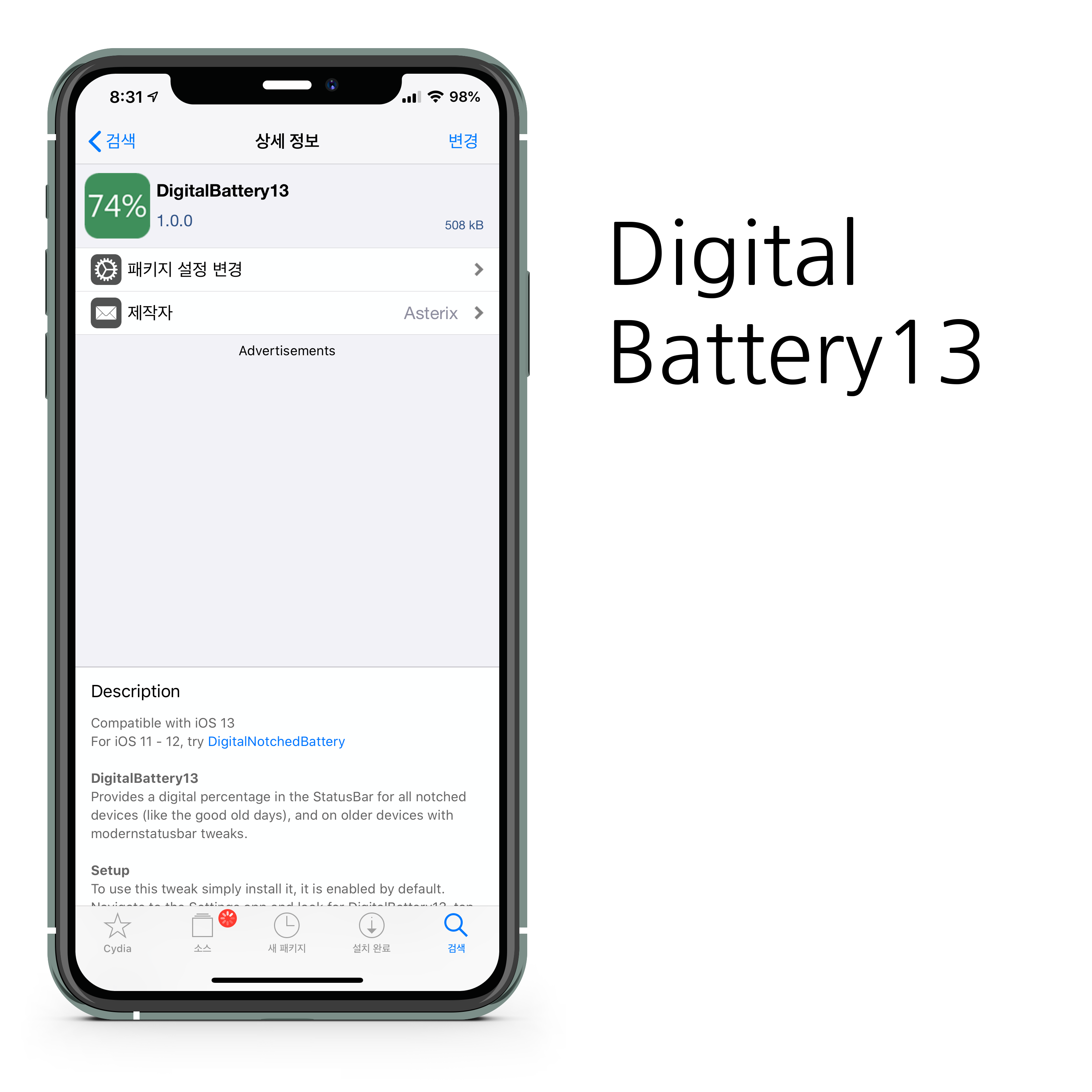 1- 아이폰에서 Cydia를 엽니다.