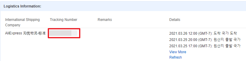 주문한 제품의 배송정보를 확인하면 트래킹 넘버가 나온다.