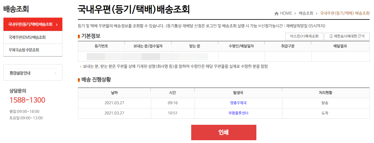 메인 페이지에 등기번호로 조회에 알리에서 나온 트래킹 넘버를 입력한다.