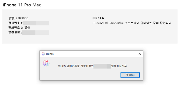 이다음 다시 아이튠즈를 통해 업데이트를 진행한다.