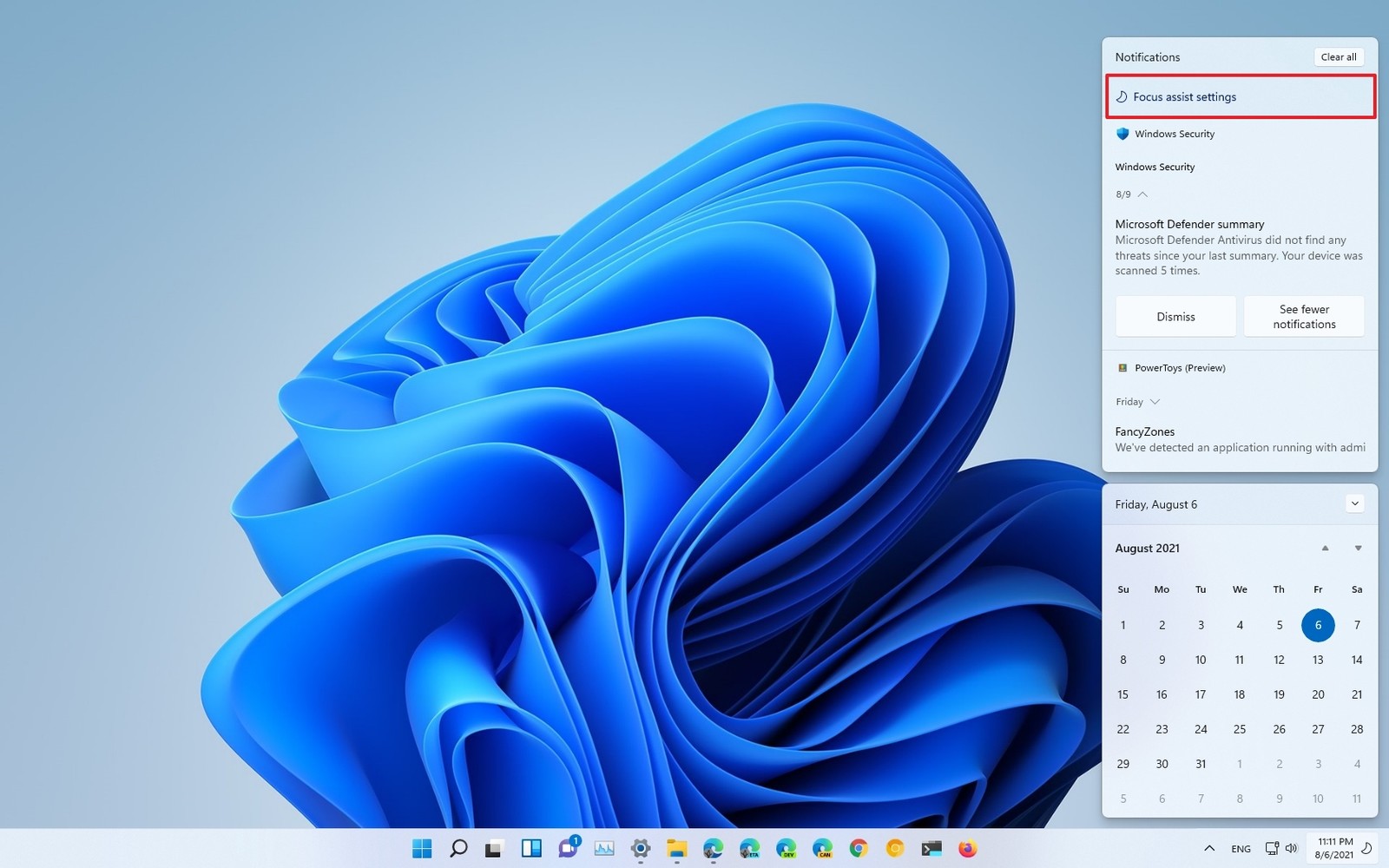 "알림 센터"(Windows 키 + N)를 열면 포커스 지원 설정 페이지에 액세스 할 수 있는 옵션이 포함되도록 업데이트되었습니다.