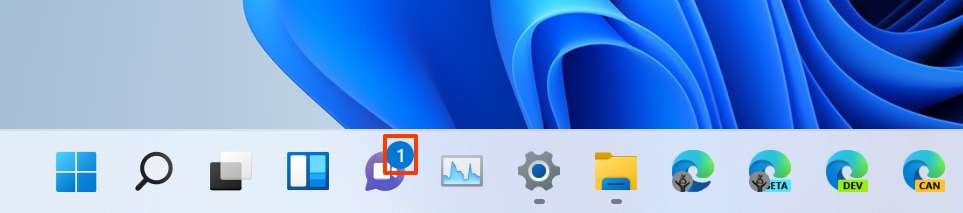 작업 표시줄 환경에 대한 몇 가지 개선 사항을 확인했습니다. 예를 들어 채팅 버튼은 보이지 않는 경고에 대한 배지 알림을 지원하도록 빌드 22000.120으로 업데이트되었습니다.