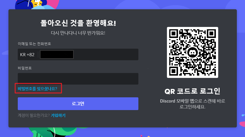 탈퇴는 바로 되기 때문에 다시 디스코드로 돌아와 기존 계정으로 로그인 시도 후 핸드폰 인증하면 된다.