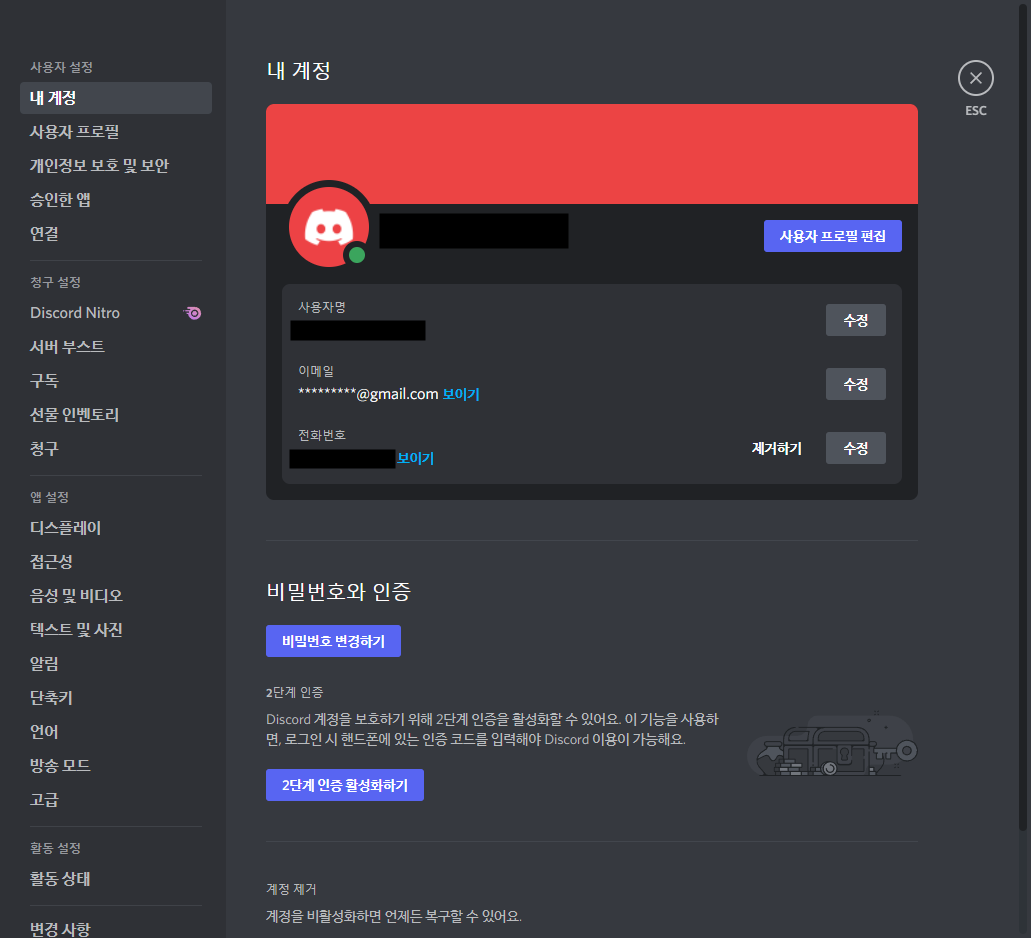계정 탈퇴를 함으로써 핸드폰 번호가 들어가 있는 디스코드 아이디를 삭제하는 개념이다.