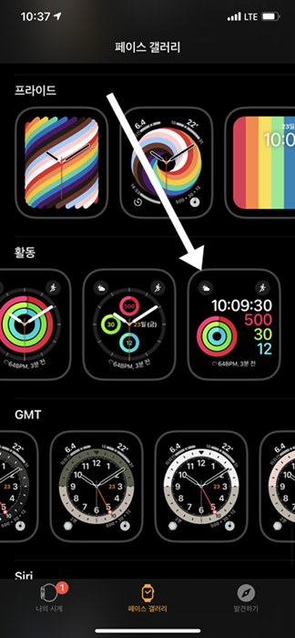아이폰에서 애플워치 앱을 찾아 들어간다. 페이스를 설정하는 창에 들어간다.
