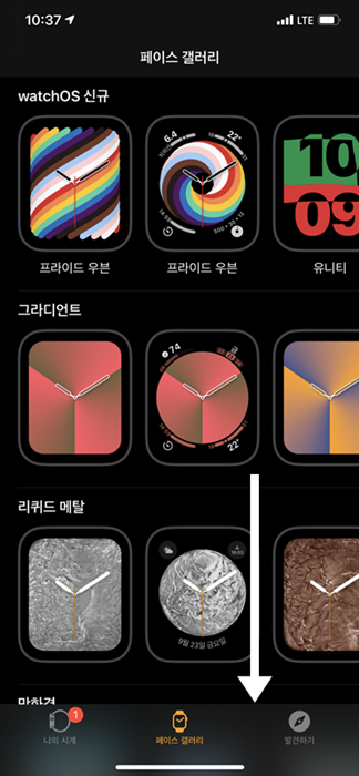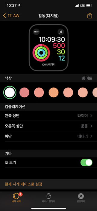 아이폰에서 애플워치 앱을 찾아 들어간다. 페이스를 설정하는 창에 들어간다.