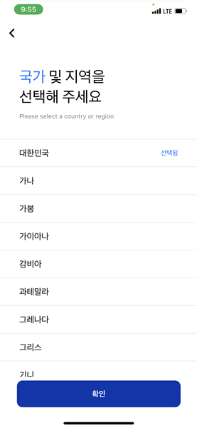 언어와 국가를 선택한다. 대한민국 국민은 대한민국을 선택한다.