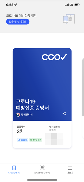 COOV 쿠브로 유럽국가 예방접종 인증하기