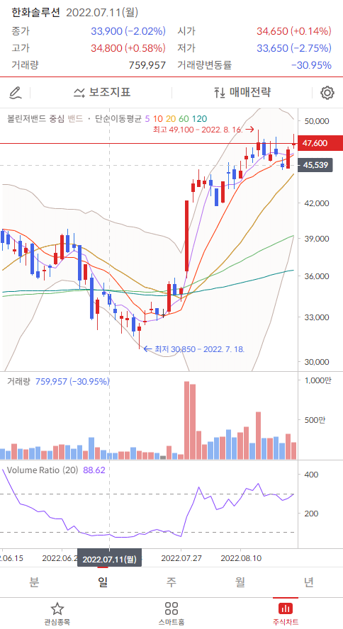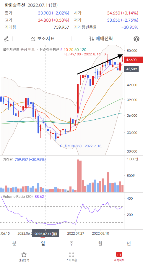 최근 들어 한화솔루션의 주가가 높은 상승폭을 이루어냈다. 7월 21일부터 30일 동안 45%에 가까운 상승세를 이루어냈다. 한화솔루션이 이러한 상승을 이루어내는 데는 이유가 있다. 7월달 한화솔루션은 에너지 플랫폼 기업을 인수했다. 유럽법인이 독일의 에너지 거래 플랫폼 기업인 링크 텍의 지분 약 66%를 인수하는 계약을 체결했고 이로 인해 한화큐셀은 태양광 셀과 모듈을 생산하는 제 조업에서 소프트웨어 및 정보통신기술기반의 토털 에너지 솔루션을 가진 기업으로 변화하려는 것 같다.