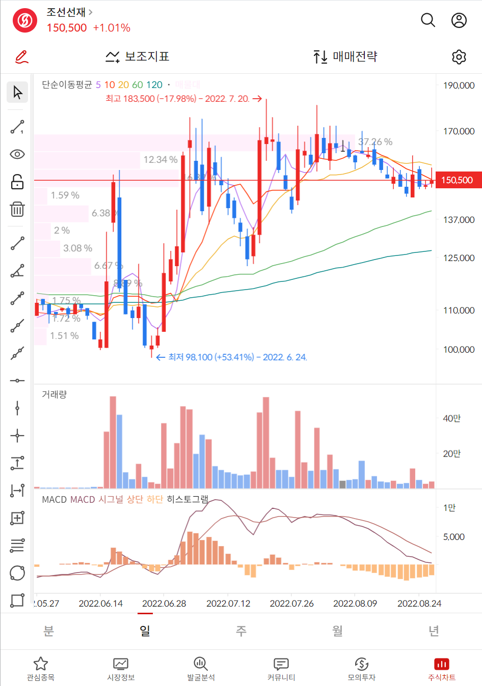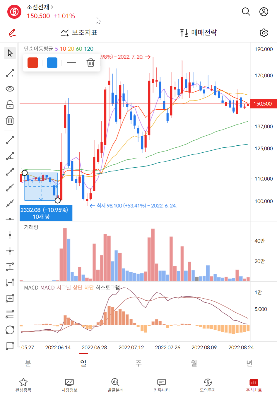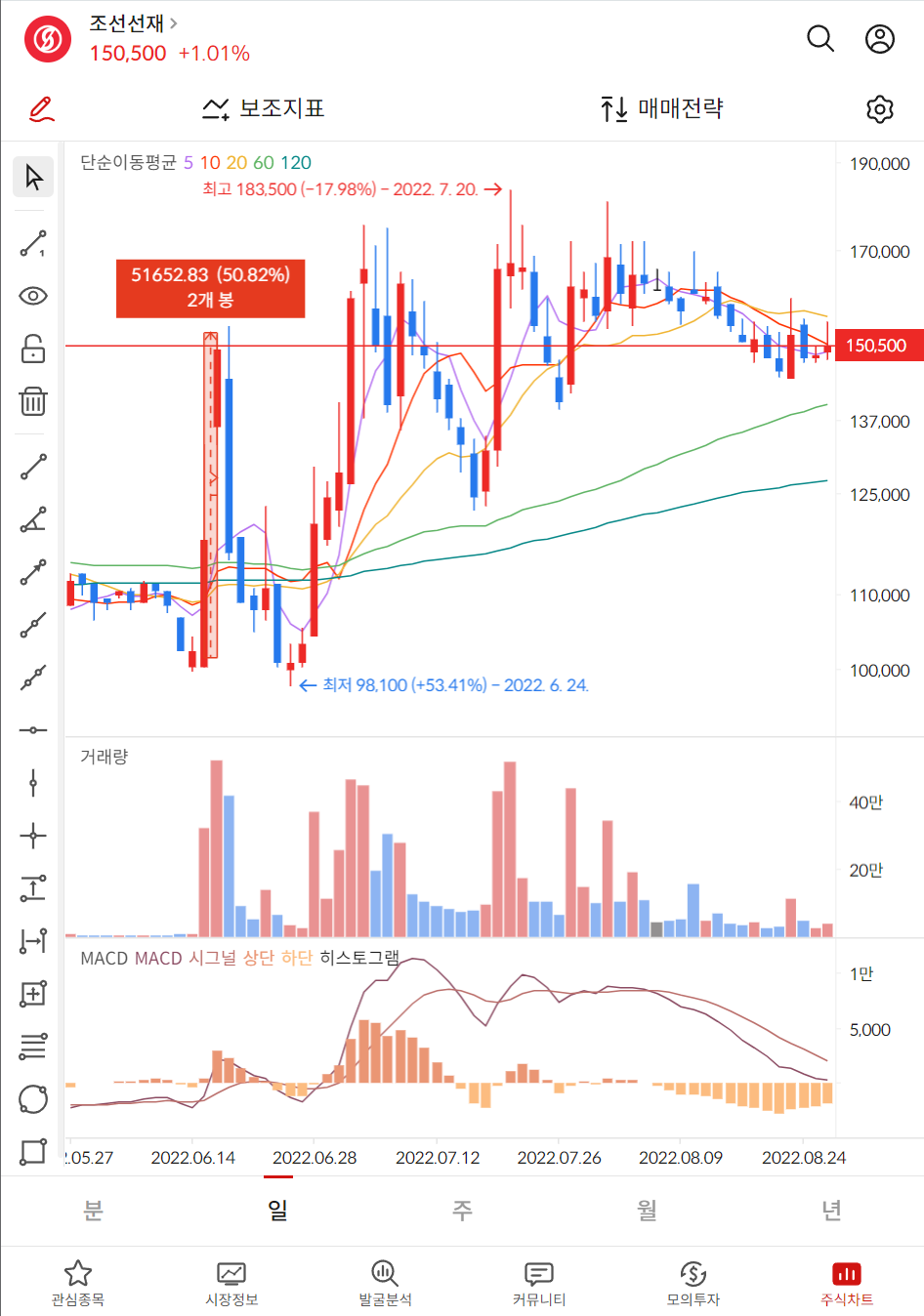 앞으로 조선선재의 주가가 어디로 움직일지 궁금하다.