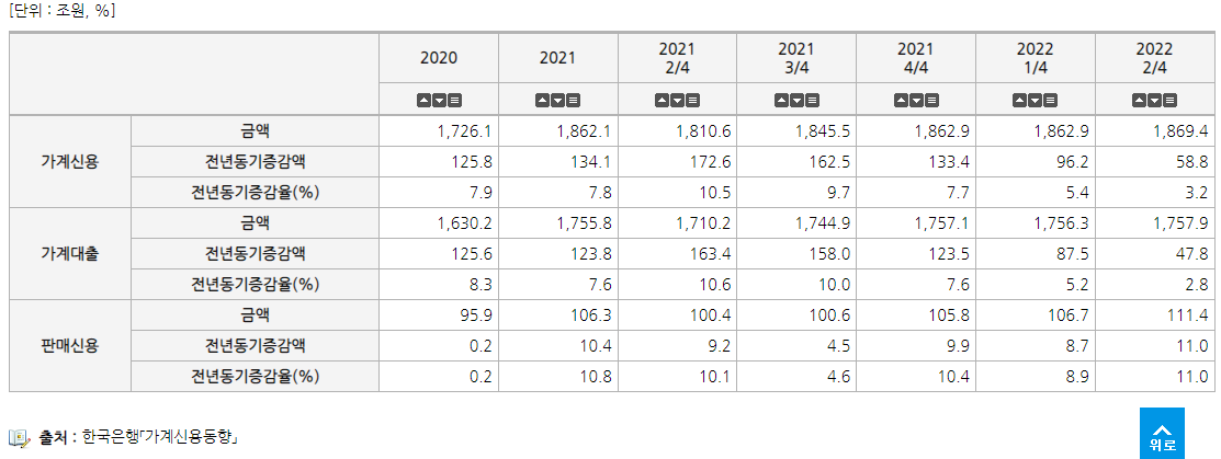 당연히 주택담보 대출과 신용 대출이 증가했고 현재 한국의 개인이 가지고 있는 가계 대출의 비율도 증가했다.