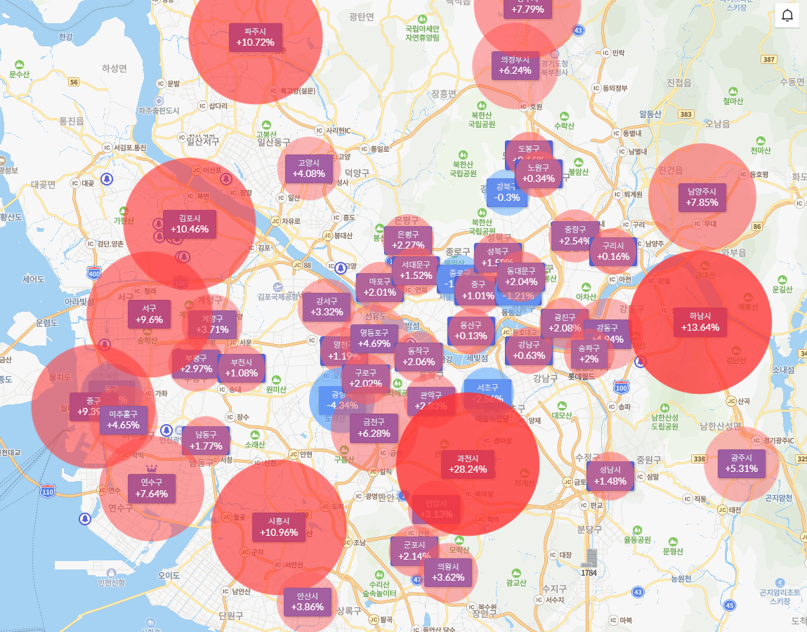 지금은 살 사람이 없는데 팔 사람만 있으니까 시장의 가격을 하향으로 . 사람들은 채 거래돼서 오른 건데 상승하는 가격은 믿고 떨어질 때 하향으로 가는 가격은 왜 믿지 않으려고 접한 시장의 정보로 코로나 기간에 가장 많이 오른 지역은 경기도와 인천이었다. 2년 동안 70% 이상 올랐다고 볼 수 있다.